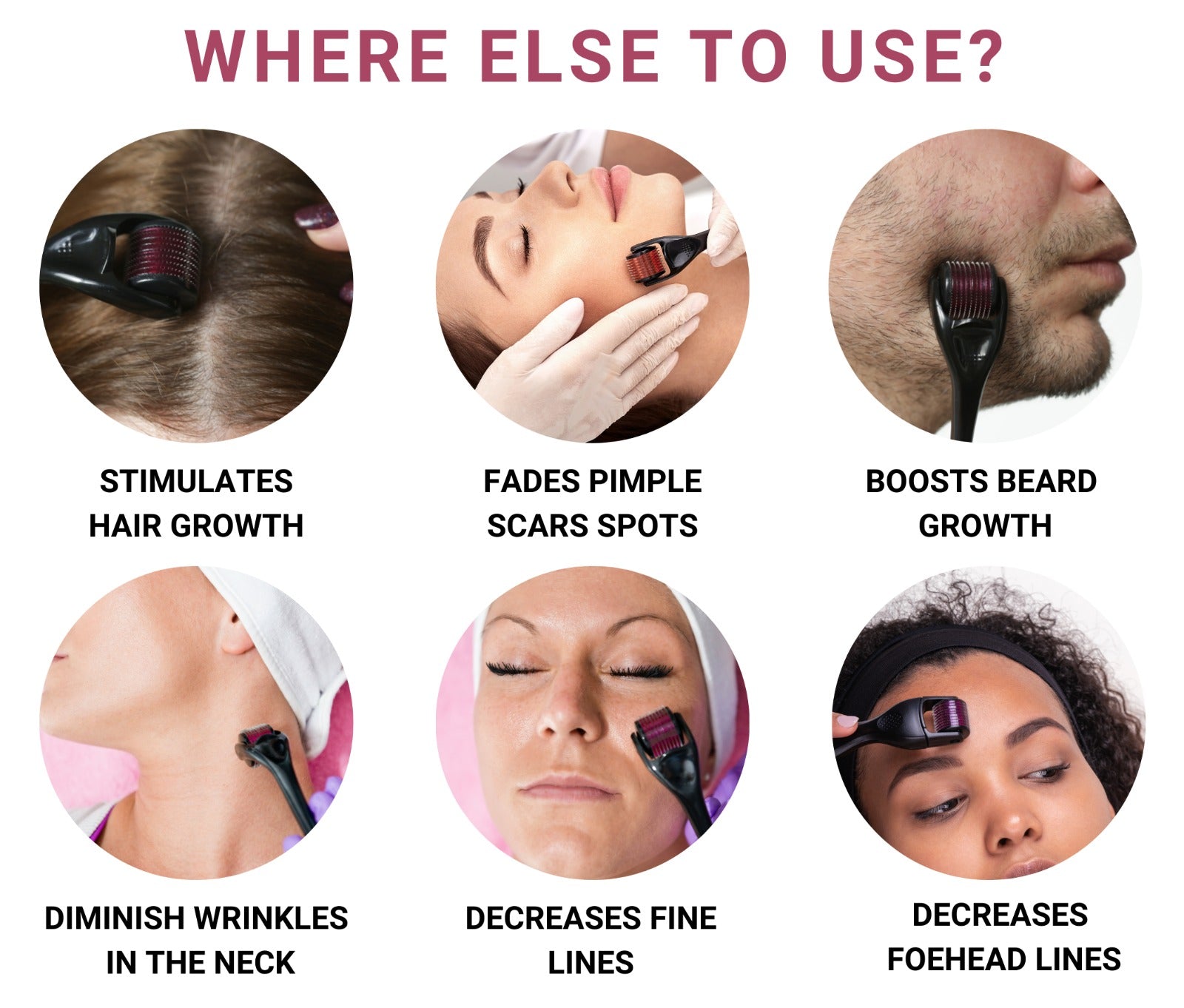 ✅Collagen Production: use of the derma roller stimulates collagen and elasticity, which can improve skin texture and appearance of fine lines and wrinkles when used on the face.